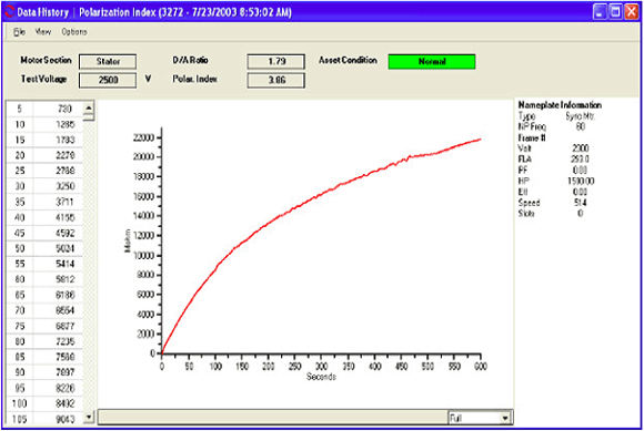 • Índice de polarização (IP) e Absorção Dielétrica (AD): Testes utilizados para avaliar a condição de isolamento do motor e seus circuitos associados.