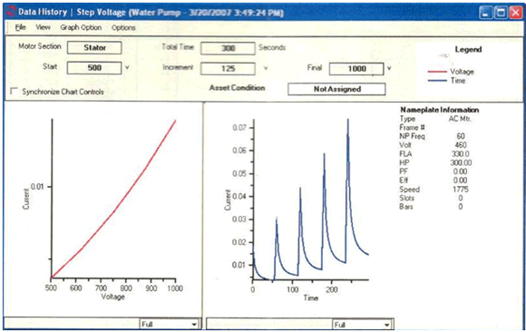 • Voltagem passo a passo (Step Voltage): Permite observar com o sistema de isolamento responde à tensão excessiva.